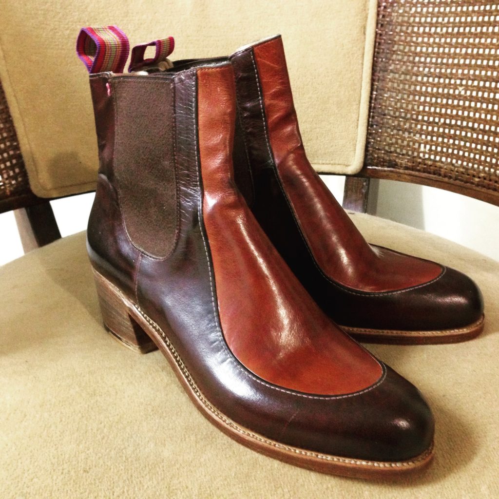 While Marika can create pretty much anything that a client’s imagination can conjure up, a fact clearly reflected in the images shown here and on her website and Instagram, she presently offers three, signature made-to-order styles for men and three signature styles for women. For both sexes the signature looks include the Chelsea Boot with Hand-stitched Back-seam and the ¾ Oxford Style Dress Shoe. A ¾ Oxford Style Lace-Up Work Boot with Hand-stitched Back-seam for ladies and a Derby Style Lace-Up Work Boot for gents round out the signature creations. All are made with vegetable-tanned leather.