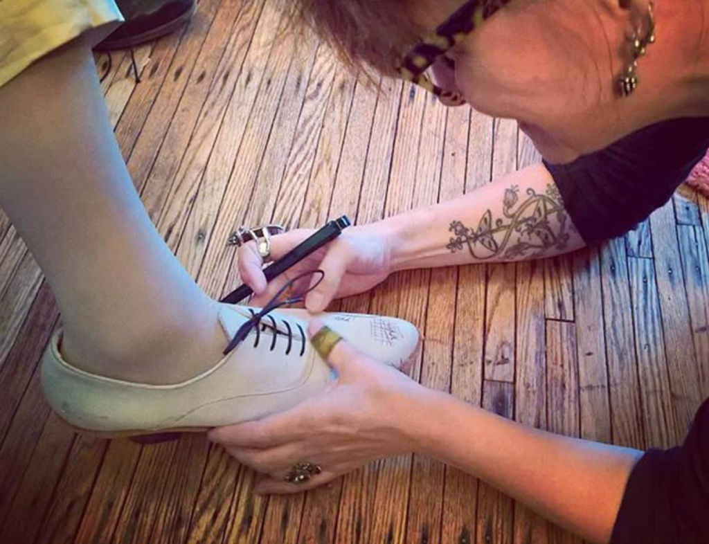 The hand of fate led her to the foot. “Out of the blue,” she recalls, “a friend passed along a flyer for a shoe-making course. And on a whim, I decided to take the class and see where it led me. I’ve always been a learner, and I’ve always been interested in functional art. Right away, I could see the physicality of footwear as a kind of 3-D sculpture. And, I also realized that I’d really always loved boots and shoes. I’d always regarded them as the foundation for the way that you walk into the world, and I’d always known that the way you felt about yourself and presented yourself to others started with how you stand and move, and with the fit and function of what you’re wearing on your feet.”