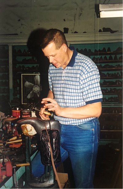 So, in 1976, he enrolled in the Shoe Boot and Saddle course at Oklahoma State Tech (OST) under Earl Bain’s direction. After graduating from the program, he made boots and did repairs for an Oklahoma western wear shop. He was ready to move on, and in 1980 became an apprentice bootmaker for Tex Robin in Coleman, Texas.
