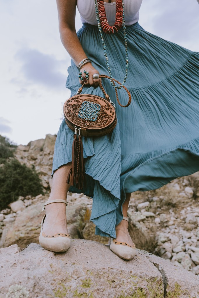 If it’s a thing that you can name, it’s under a western sky. None, however, respond to the firmament’s embrace of the earth more brilliantly than Western Skies Handmade, artist Sarah Garvey’s brand of purses and other unique leather goods based today in Arizona.