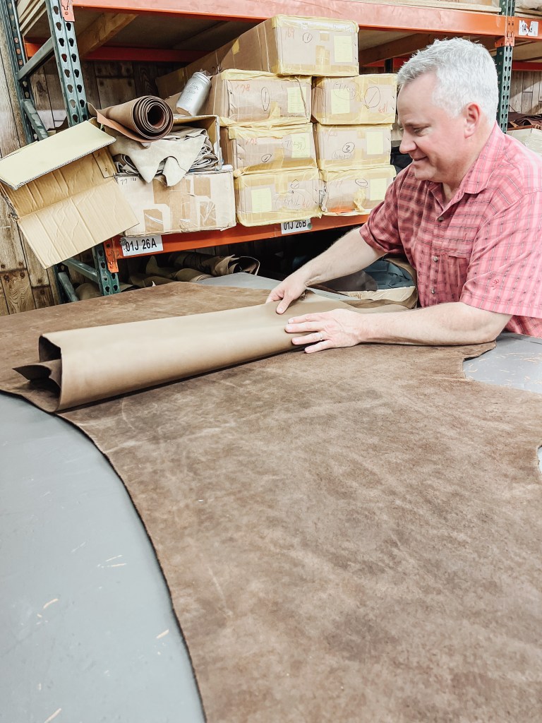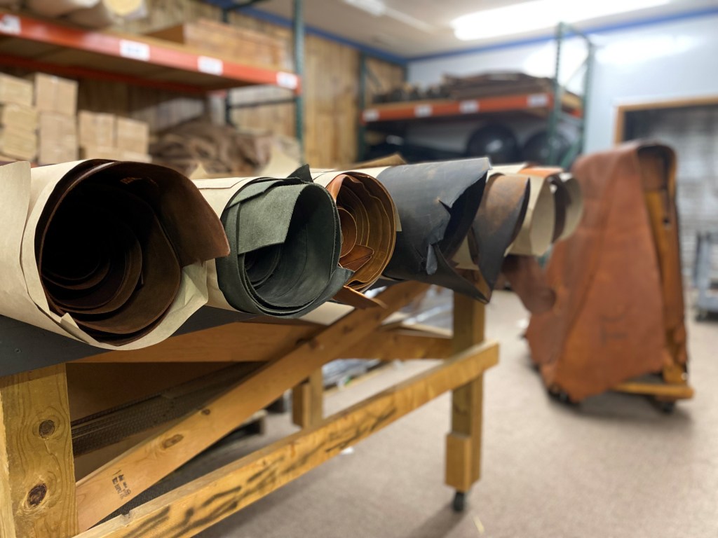 “We own the building. One side of the space functions as a warehouse; the other side is for manufacturing products,” Tucker said. “It was an old grocery store, back in the day. Mainly, it’s where we warehouse and distribute our leather. We’re bringing in leather and sending it out. We can sell one side of leather, up to a pallet. We can handle from small to larger orders.”