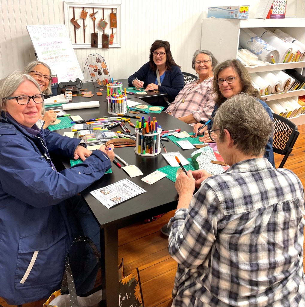 The ongoing classes are offered in the back half of the original, J.C. Penney store. The enterprise, which began in mid-March of this year, is called Hometown Leatherworks. The response so far has been positive. “People are super excited and enjoy learning a leathercraft. I’m there for three hours, three or four times a week. We’re busy every day. We do DIY (do-it-yourself) classes and ‘make-and-take’ projects,” she said.