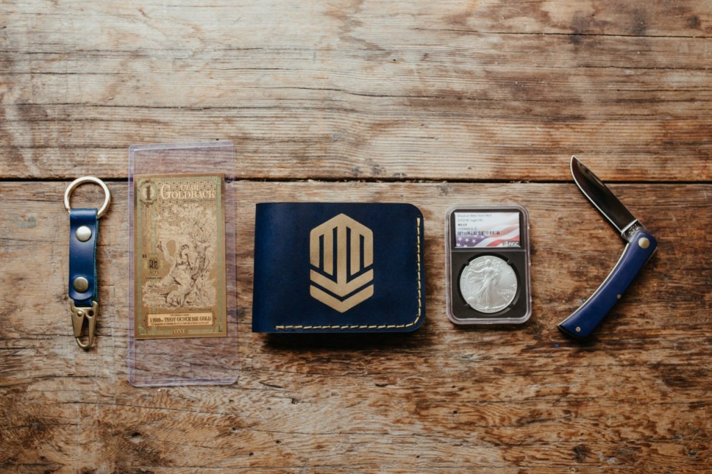 Despite their challenging circumstances, Trevor decided to pursue his interest in leathercraft. He was intrigued by the concept of individual expression conveyed through the trucker’s wallets he had seen while stationed in Texas, so he built one and sold it on Etsy. As Trevor’s leathermaking hobby evolved into a viable business, Jessica began working with him, handling marketing and social media. They expanded their product line. They created a pouch wallet with two slots for storing golden eagles, and other NGC-graded slabs for rare coins, for Colonial Gold and Silver in Ligonier, Pennsylvania.